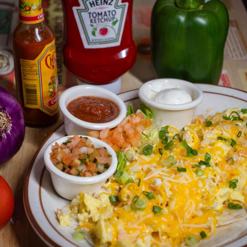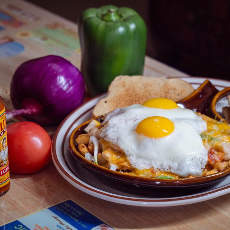 Served with hashbrowns, and your choice of toast or pancakes | Add Green Chili +$1.49 | Bacon, Chicken, Chorizo, Ham, Sausage, Turkey +$2.29 each | Broccoli, Green Chiles, Jalapenos, Peppers, Mushrooms +$1.59 each | Green Chili, Country Gravy, Hollandaise Sauce +$2.29 each