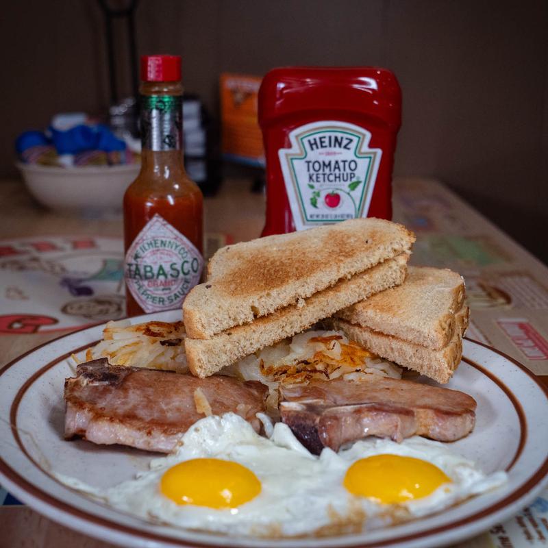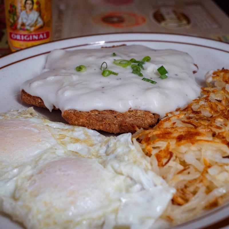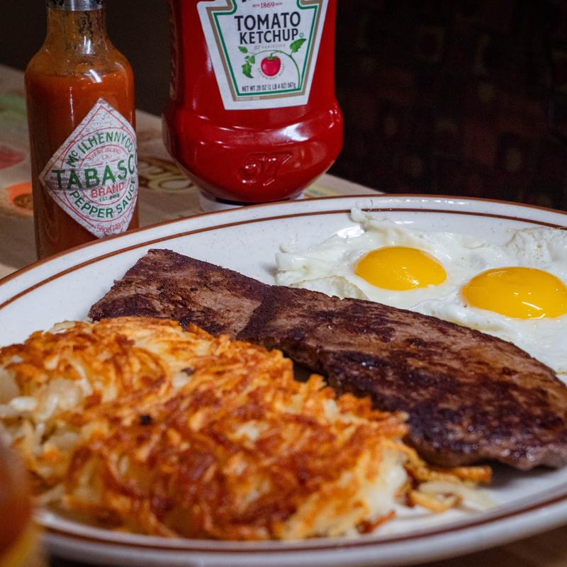 Served with our homemade hash browns, and your choice of toast or pancakes.