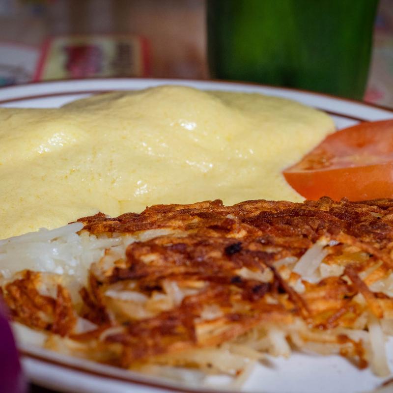With any eggs breakfast, substitute whole egg with choice of egg whites available at no extra charge. Substitute your hash browns for cottage cheese, tomato slices, or fruit at no extra charge.